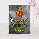 The front of this spooky and scary Halloween themed birthday greeting card design features a large number “4”, along with the message “HAPPY BIRTHDAY,”, and a customizable name. There are also depictions of a ghost and a bat on the front. The inside features a personalized birthday greeting message, or could perhaps be cleared and left blank if a message is to be written by hand instead. A custom birthday card like this might be a fun way to send birthday wishes to somebody who is celebrating their fourth birthday and who was also born on October 31st (Halloween). [~Z0000547]