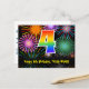 4th Birthday – Fun Fireworks Pattern + Rainbow 4 Postcard