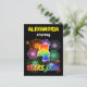 The front of this lively and fun birthday party invitation postcard design has a personalized name, a vibrant bursting celebratory fireworks inspired pattern, and the message "4 YEARS OLD!" having a colorful rainbow spectrum inspired gradient pattern. The back features a customizable message that could describe when and where the party is being held, in addition to other relevant information. Invitation postcards like this could be sent to potential attendees of a birthday party being held to celebrate somebody’s fourth birthday. [~Z0000452]