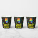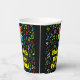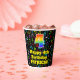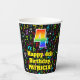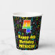 This fun and colorful music themed birthday paper cup design features a large number “4” having a rainbow spectrum gradient inspired pattern. It also features the message “Happy 4th Birthday,”, and a personalized name. The background features an exciting and colorful pattern of various music notes and symbols of different colors and sizes. Vibrant, colorful paper cups like this might be fun to have at a birthday celebration/party being held to celebrate somebody’s fourth birthday. [~Z0000541]