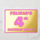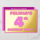 The front of this fun and bold fourth birthday party/celebration foil announcement card features a personalized name, a large number “4th”, the message “BIRTHDAY PARTY!”, and a border, all featuring a feminine dark pink and light pink striped pattern. The back features personalized details about the event, such as the date, time, venue/location, and any other useful information. Personalized invitations like these might be used to invite attendees to a birthday gathering being held to celebrate somebody’s 4th birthday. [~Z0000597]