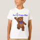 A birthday party for kids and teddy bears. Cute little brown teddy bears with blue bows dancing across this fun 4th birthday party shirt for the 4 year old boy. Personalize all text using the templates provided. Original design by Anura Design Studio.