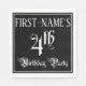 This opulent and elaborate birthday themed paper napkin design features a custom name and the message “4th Birthday Party”. The large number “4th” and the words “Birthday Party” are in ornate script-style text. The background is colored black by default (although it can be customized). Ornate, elegant paper napkins like this might be useful to have at a birthday celebration being held to celebrate somebody’s fourth birthday. [~Z0000563]