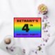 The front of this exciting fourth birthday party/celebration foil invitation card design features a custom name, a large number “4th”, the message “BIRTHDAY PARTY!”, and a border. The background of the front features an upbeat, multicolored, rainbow spectrum inspired gradient pattern. The back features personalized details about the event, such as the date, time, location/venue, and any other information that may be useful. Customized invitations like these might be a fun way to invite guests to a birthday party/gathering being held to honor somebody’s 4th birthday. [~Z0000599]