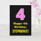 4th Birthday: Pink Stripes and Hearts "4" + Name Card