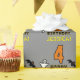 This scary and spooky Hallowe'en birthday themed wrapping paper design features a large number "4". It also features the message "HAPPY BIRTHDAY,", plus a customizable name. There are also depictions of a ghost and a bat on the front. Wrapping paper like this might be fun to use when wrapping presents that are being given to somebody who was born on October 31st (Halloween) and who is celebrating their fourth birthday. [~Z0000411]