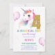 4th Birthday Unicorn Birthday Invitations