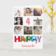 4th Happy Birthday Photo Collage Modern Pink Card
