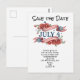 Mark your calendar for a festive celebration with this 4th of July Save the Date Postcard. Featuring a bright, modern watercolor design with patriotic red, white, and blue accents, this postcard is perfect for announcing your upcoming Independence Day party. Ideal for BBQs, backyard gatherings, summer celebrations, or country club events, it sets the tone for a fun and memorable holiday.