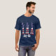 My 11 yo wore adult XL (5’7” 165#). The 8yo is small framed. She wore adult small and tied it in the back. Grandma wore adult large with long sleeve shirt underneath. Tall girl adult medium. Dark haired male adult large. Good quality dark Heather gray, Gildan brand shirt. -it was next up from basic choice and cost about $20 per shirt. Not too thick or thin. Washed and dried well, no major shrinkage. Not see-through. Can wear a bra under it fine. Screen print is just as shown and well done, front and back.