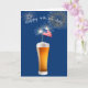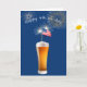 Sparklers and American flag in beer glass on blue background for 4th of July.