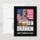 Fun 4th of July BEN DRANKIN patriotic postcard showing an image of Benjamin Franklin and the Stars and Stripes flag of the United States. Includes a trio of beers. Ideal fun July 4th postcard for American Independence celebrations.