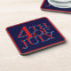 This design is done on a dark blue backround with "4th of July" printed on the front. A red border was added to this design. Matches other items in our Kitchen Essentials category. This coaster is available in square or round.