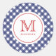 4th Of July Blue Checks Red Monogram Party Sticker