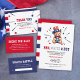 Red, white & due bear-themed 4th of July baby shower guest thank you stickers. Personalized with a thank you message, name, and date. Patry decor with red, white, and blue colors.