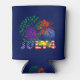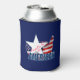 Colorful fireworks and a text JULY4 as the American flag on the front. Proud to be an American image on the other side. Beautiful can cooler. Patriotic Fourth of July Independence Day gifts and souvenirs for anyone.