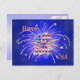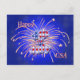 Golden fireworks with stars bursting in celebration behind US flag filled 4th of July lettering for an Independence Day postcard greeting. You may also enjoy cards and gifts with this bright 4th of July design available in my store. Original design by Anura Design Studio.