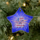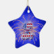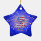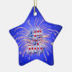 Golden fireworks with stars bursting in celebration behind US flag filled 4th of July lettering for star ornament that makes the perfect keepsake gift for USA Independence Day. You may also enjoy cards and gifts with this bright 4th of July design available in my store. Original design by Anura Design Studio.