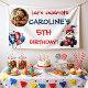 Make your party pop with this custom photo banner. Featuring a cute patriotic gnome and stars, it’s the perfect July 4th birthday backdrop. Durable and easy to personalize with your child's picture and name
