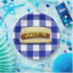 Hot dog on blue and white buffalo plaid for 4th of July BBQ party.