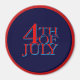 This text design is colored in red and blue. "4th of July" is done in print. A red border and blue backround were added. This design is featured on assorted merchandise through the kitchenware dept. Mix and match.