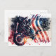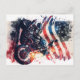 Happy 4th of July! As part of a series of 4th of July postcards by my shop, this card features a watercolor illustration of red, white, and blue themed motorcycle in front of a backdrop of the American flag. The vibrant colors capture the excitement of this festive occasion. Share the spirit of America's independence with your loved ones by sending them this beautiful postcard.