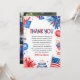 Show your appreciation with our "Land of the Three" 4th of July patriotic birthday thank you card! Perfect for celebrating your child's third birthday, this card features bold red, white, and blue colors with playful stars and patriotic elements. The design captures the festive spirit of Independence Day, making it an ideal way to thank your guests for their presence and gifts. Personalize the card with your heartfelt message to add a special touch.