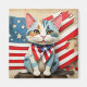 Cartoon cat on USA Independence day in red, white and blue, of course.