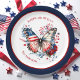Paper Plates with an American Flag butterfly, flowers, and fireworks in national colors. Elegant design with a patriotic theme. Easily personalize the text or leave it blank. Please visit the store for the full line of products that are available - Kate Eden Art