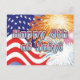 4th of July postcard with flag and fireworks