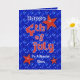 Cute red stars and red star filled lettering on a blue sky filled with lights of Independence day fireworks is a fun greeting car for your son, who is an American star. Text may be personalized using the templates provided. Original art and design by Anura Design Studio.