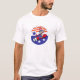 Show your patriotism with this 4th of July design with Uncle Sam riding on a rocket with a red, white and blue background.
