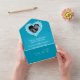 4th wedding anniversary party event with photo and detachable RSVP invitations can be sealed so no envelope is required. A beautiful topaz blue gemstone effect in a heart shape printed graphics wedding anniversary invitations, personalize with your own wedding anniversary party details, a photo of the happy couple. Make it easy for you and your guests to send as no envelope is required simply handwrite on your sealed invitations and your guests can reply with the detachable rsvp and affixing a stamp for quick and easy guest responses. The fourth wedding anniversary is associated with the gemstone blue topaz and the heart symbolizes love. Other matching items are available. Graphics and design by Sarah Trett for www.mylittleeden.com and www.mylittleedenweddings.com