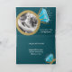 4th blue topaz wedding anniversary now and then photo template card in blue-green, gold, and white sparkle. Featuring a graphic blue topaz eternity ring with two photos of you and your partner now and then. Personalized with your own photos of your wedding day and a current photo on the inside then add your own celebration message. Other matching items are available. Original ring graphic art and design by Sarah Trett for www.mylittleeden.com on Zazzle.