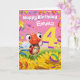 A gorgeous little ladybug hovering above sunflowers and bringing a colourful birthday greeting for the very special 4 year old in your world.