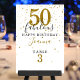 This chic black and gold script typography, 50 and fabulous gold stars confetti birthday table number can be personalized with your birthday celebration information. Designed by Thisisnotme©