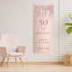 A vertical banner for a girly and glamorous 50th & Fabulous birthday party. A faux rose gold gradient background with an elegant rose gold, pink and faux silver glitter drips, paint dripping look. With the text: 50 and Fabulous + Happy Birthday. Personalize and add age and name. Perfect both as a welcome banner or as party decor.