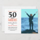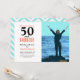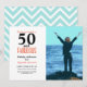 Modern 50th birthday photo invitation that you can personalize and send to celebrate turning 50. "50 and fabulous" is set in a popular design in coral, and black. Text in coral and black that you can personalize using the edit menu. Replace the photo with your own. There is a mint green chevron pattern on the back that can be changed.