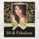 Celebrate your 50th birthday in style with these modern elegant gold black damask 50th Birthday Party party bottle labels. You can personalize your fiftieth birthday party celebration. The words "50 and Fabulous" are set using popular typhography. You can personalize script fonts and font colors in the design. Please note, this design is a printed photo effect with no real gold foil and bow. # 3332d