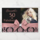Celebrate your 50th birthday in style with these modern elegant pink rose gold glitter floral damask 50th Birthday Party party bottle labels. You can personalize your fiftieth birthday party celebration. The words "50 and Fabulous" are set using popular typhography. You can personalize script fonts and font colors in the design. Please note, this design is a printed photo effect with no real glitter and bow. # 3302b