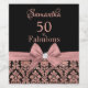 Celebrate your 50th birthday in style with these modern elegant pink rose gold glitter floral damask 50th Birthday Party party custom personalized monogram name script bottle labels. You can personalize your fiftieth birthday party celebration. The words "50 and Fabulous" are set using popular typhography. The first name script is written in a pretty hand lettered calligraphy style font. Please note, this design is a printed photo effect with no real glitter and bow.