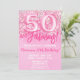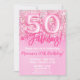 Plain white envelopes are included with paper invitations and will come to fit the invitation size you select. If you don’t need the envelopes, you may choose to not receive them by selecting the dropdown below "Envelopes" and choosing "None." If you’d like to have a design on your envelopes, you can browse all of these available envelopes to find the design that complements your 50 And Fabulous Birthday Pink Glitter Invitation.