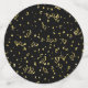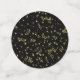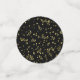 Fifty and Fabulous, black and gold birthday party theme. The black script is edged with gold and sprinkled all over with golden confetti on the front. The back is a coordinating black background with gold confetti.
