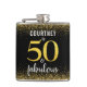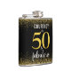 “50 and fabulous.” Be proud, rejoice and usher in 50 with style! This chic, playful, personalized, sparkly gold faux glitter confetti on a black background flask will help make her birthday special. Matching and coordinating invitations, envelopes, labels, paper napkins, paper plates, mugs and other items are also available. A fun gift for a good friend!