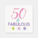 Colorful daisy's celebrating 50 and fabulous in pink, teal and purple texted.