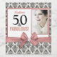 Celebrate your 50th birthday in style with these modern elegant pink rose gold bow and gray damask 50th Birthday Party party bottle labels. You can personalize your fiftieth birthday party celebration. The words "50 and Fabulous" are set using popular typhography. You can personalize script fonts and font colors in the design. Please note, this design is a printed photo effect with no real diamond and bow. # 3302