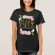 Elegant t-shirt for a special lady that turned 50! This typography design features a faux gold font in hand lettered script that says "Fifty" with pink fonts following "& FABULOUS." There are hand painted watercolor flowers (camellia and magnolia) in pink and cream around the texts. Perfect shirt to wear on your fiftieth birthday party!