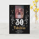 50 and Fabulous Foliage 50th Birthday Photo Card. 50 and fabulous text in trendy white script with a name and white foliage on a black background. Personalize it with your photo, your name and the age. Add your text inside the card or erase it.