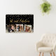 Elegant custom birthday design featuring gold and silver confetti over a black background, modern script typography with the words "50 and Fabulous" (in gold), "Happy Birthday" with your custom name (in silver), and three of your favorite photos framed in metallic gold foil squares.
