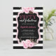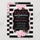50 and Fabulous Pink Floral Black Stripe Invitation